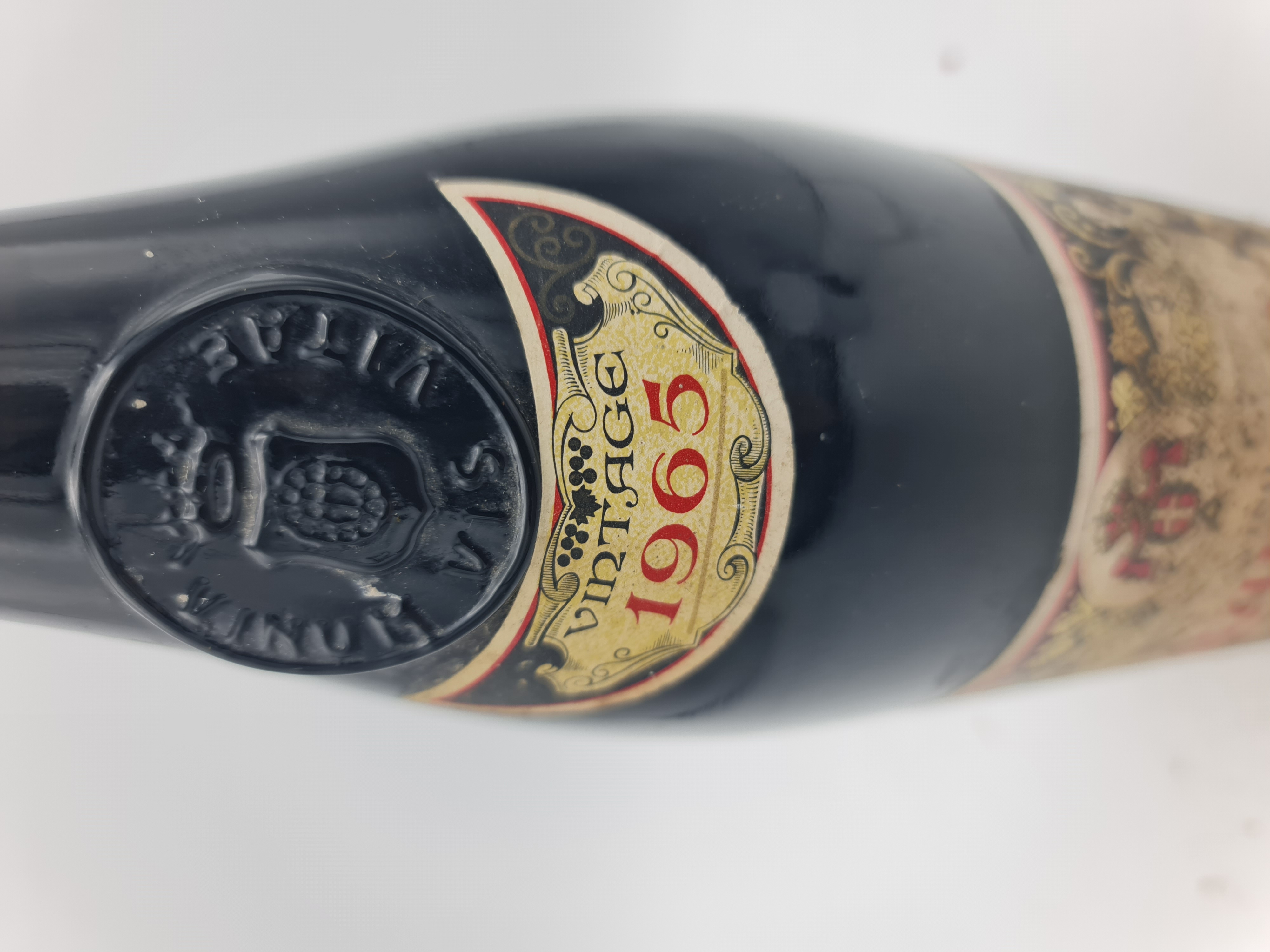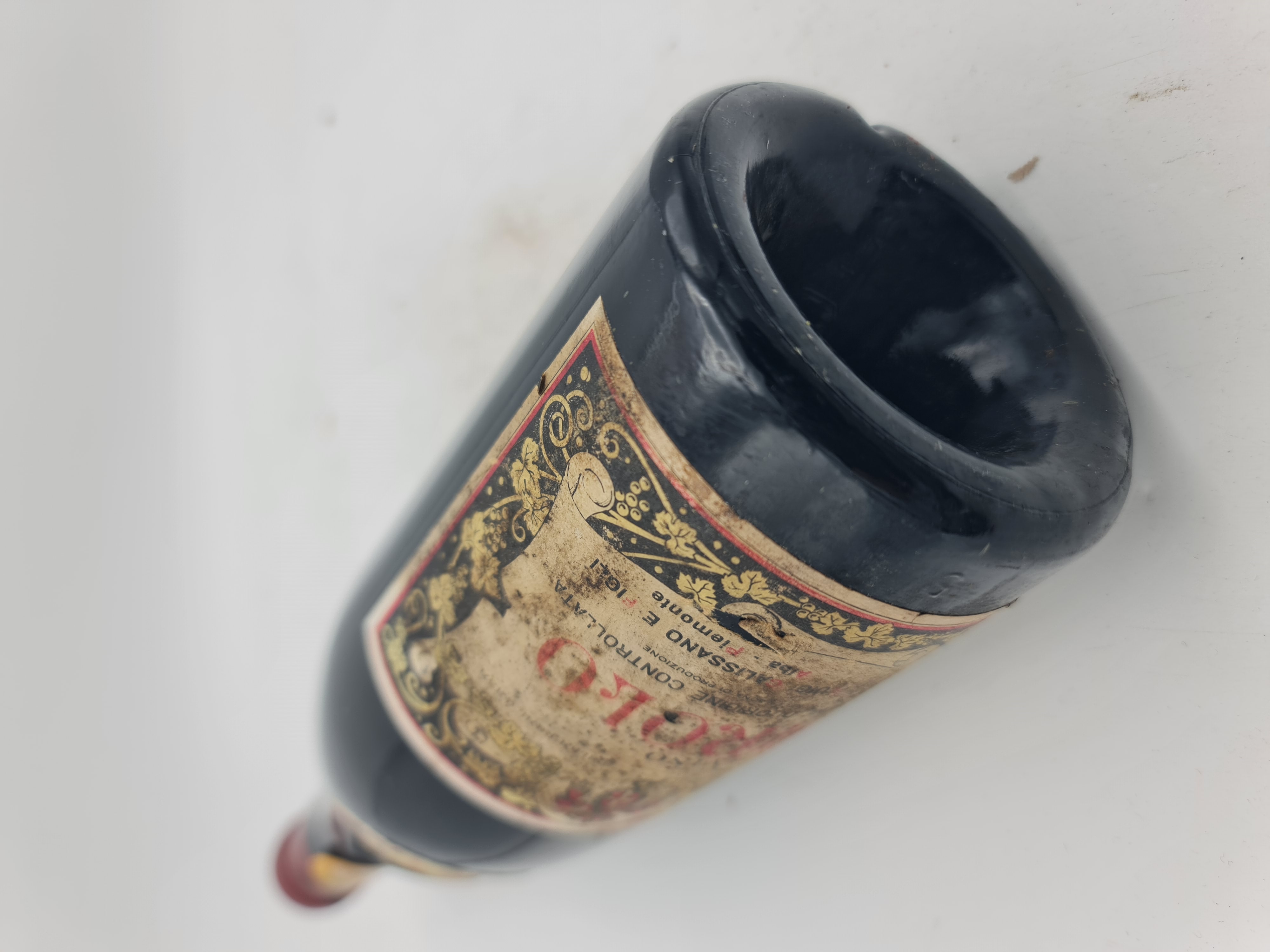 Füllniveau 3cm, Etikett verschmutzt und Kapsel gut.