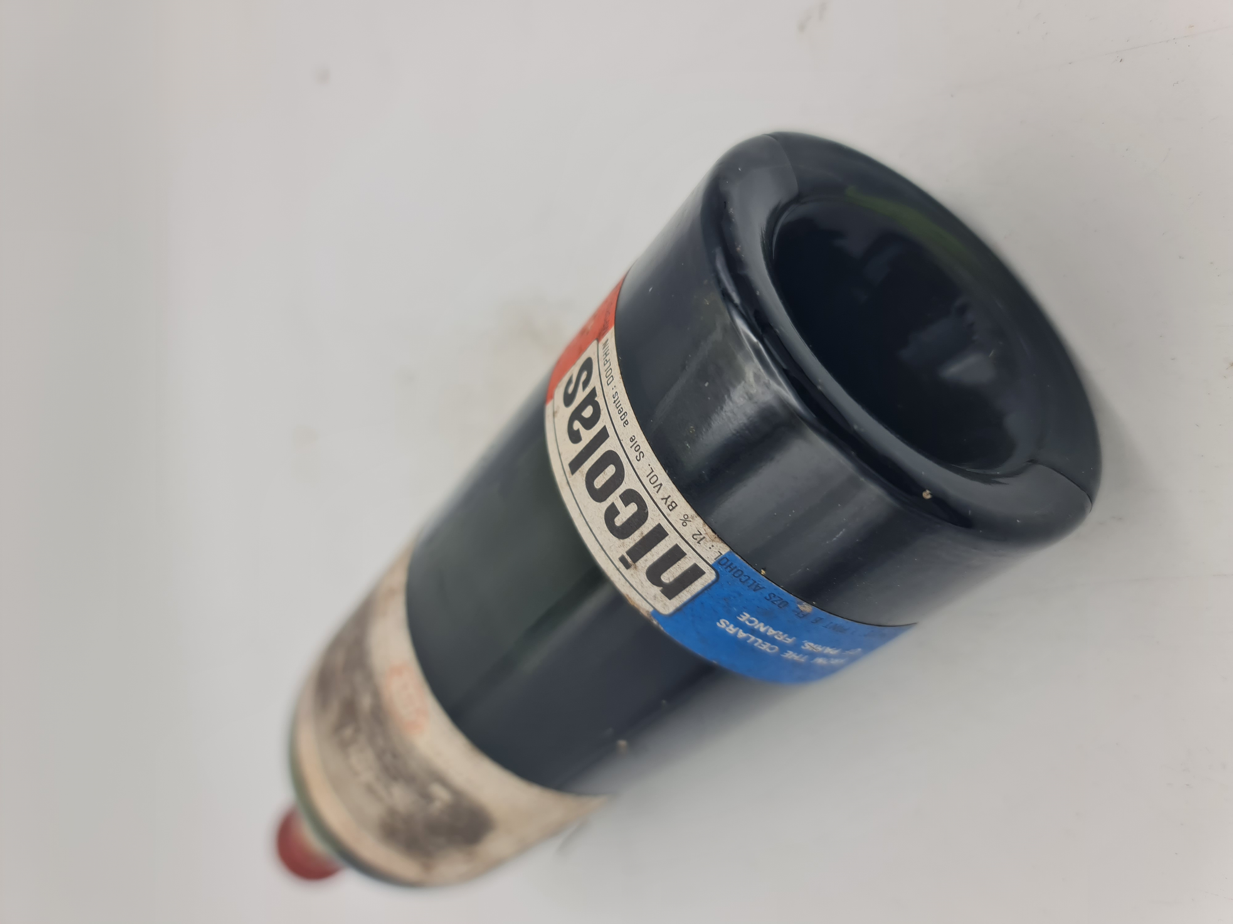 Filling level upper/midshoulder, capsule good and label soiled.