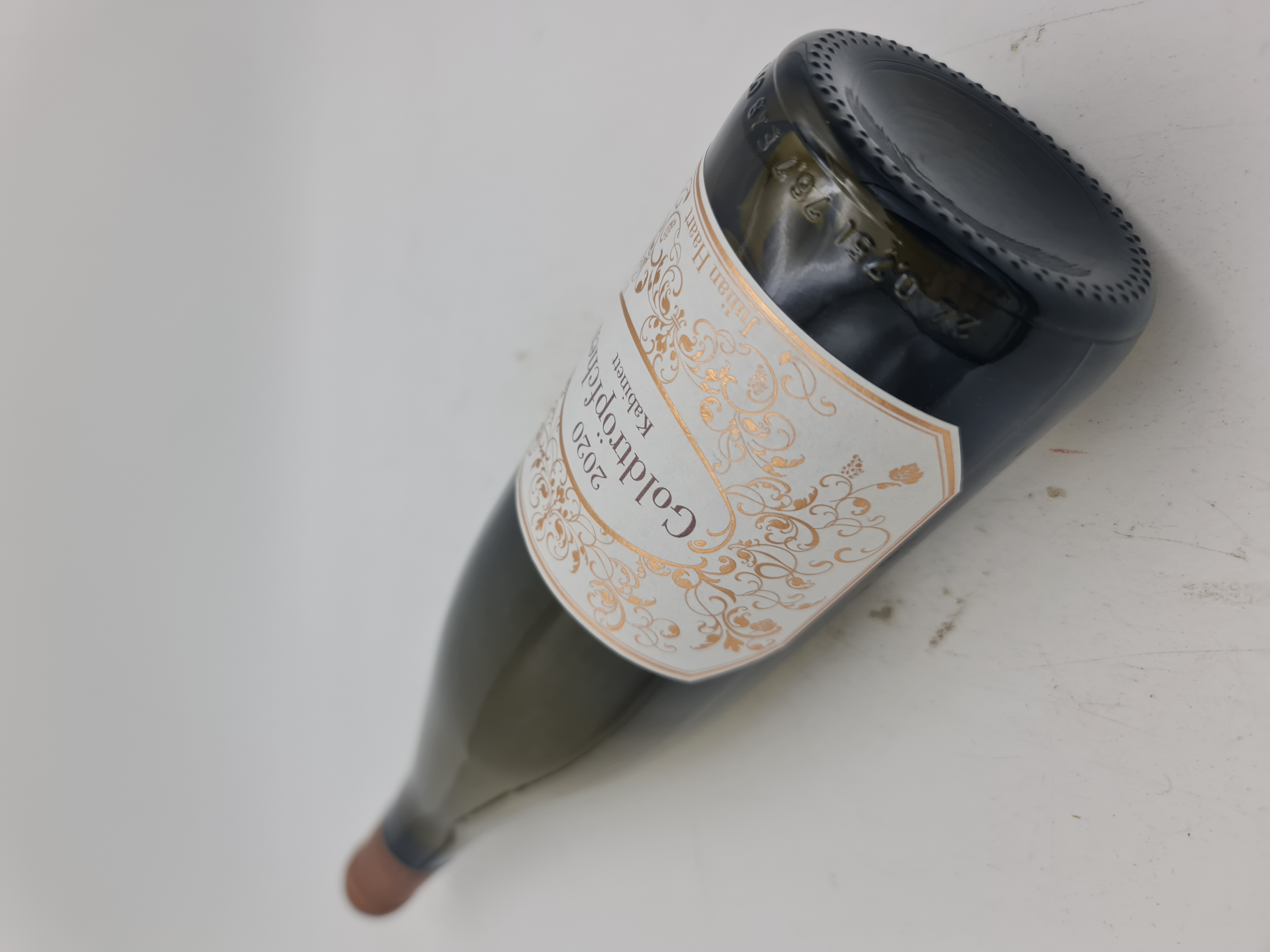 Filling level into neck, label and capsule very good.